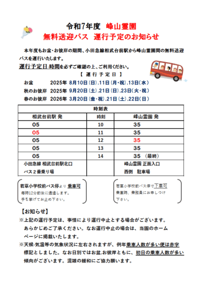 【重要】無料送迎バスに関するご案内(相武台前駅⇔峰山霊園)