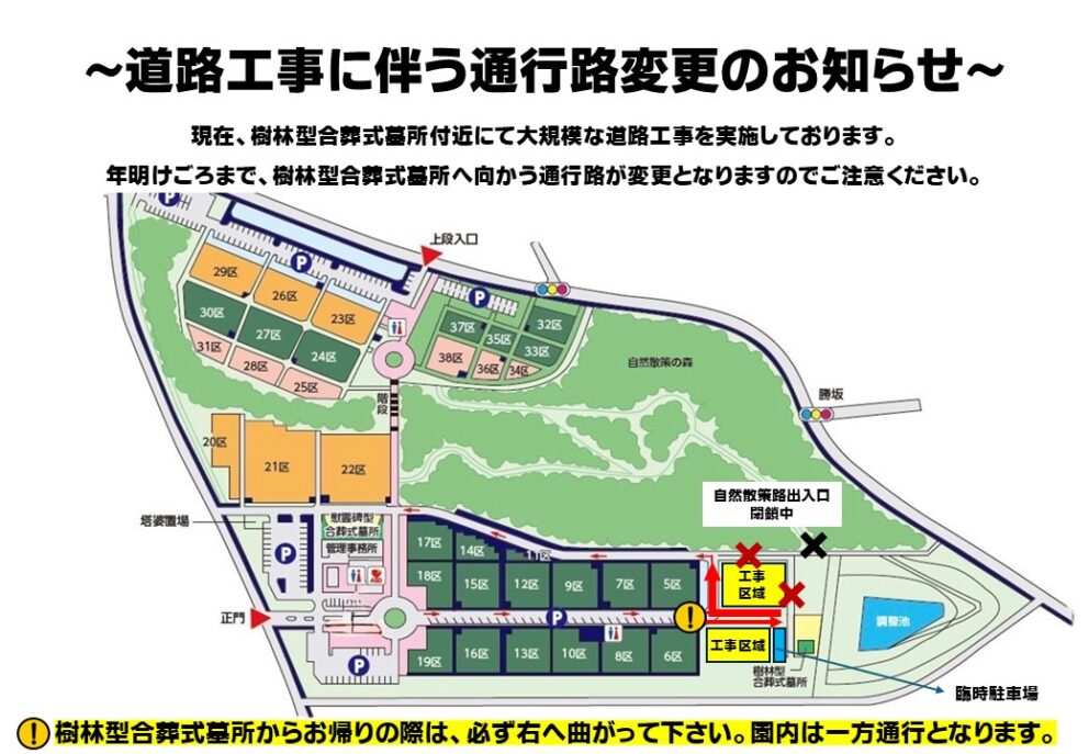 【年明けごろまで】園内の道路工事に伴う通行規制について